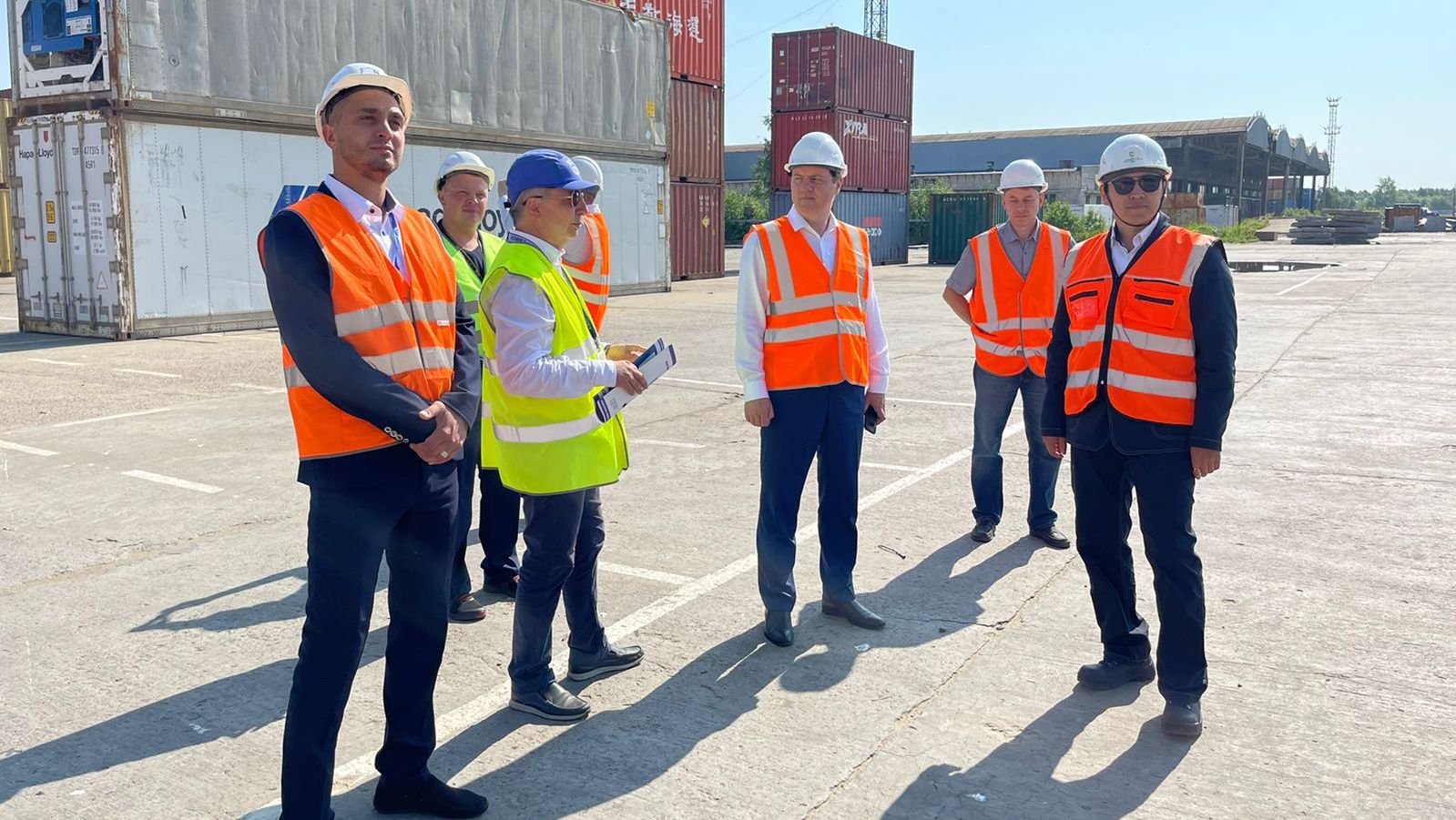 Градоначальник в ходе рабочей поездки обсудил возможности развития Архангельского морского торгового порта с директором «Архморторгпорт» Цеценом Горяевым.