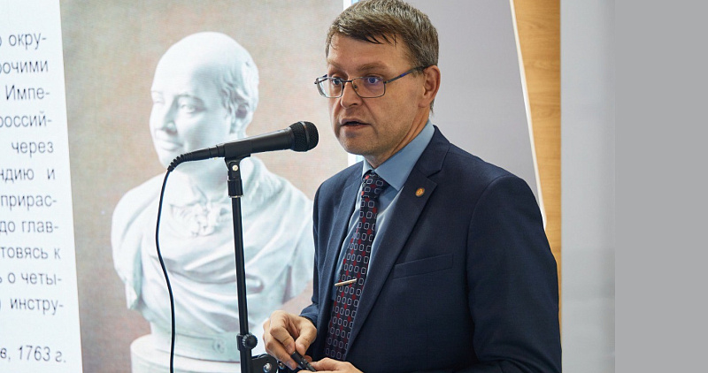Лекцию о становлении и развитии науки в Поморье на стенде Архангельской области слушателям прочитал кандидат исторических наук, профессор кафедры всеобщей истории Северного (Арктического) федерального университета имени М.В. Ломоносова Роман Болдырев.