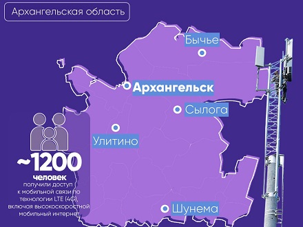 Доступ к современной мобильной связи по технологии LTE (4G), в том числе к высокоскоростному интернету, получили порядка 1 200 человек, проживающих в разных частях региона: в поселках Шунема Вельского района, Улитино Плесецкого округа, Сылога Пинежского района, а также в деревне Бычье Мезенского округа. До момента запуска базовых станций ни один из указанных населенных пунктов не входил в зону устойчивого покрытия сетей мобильных операторов.