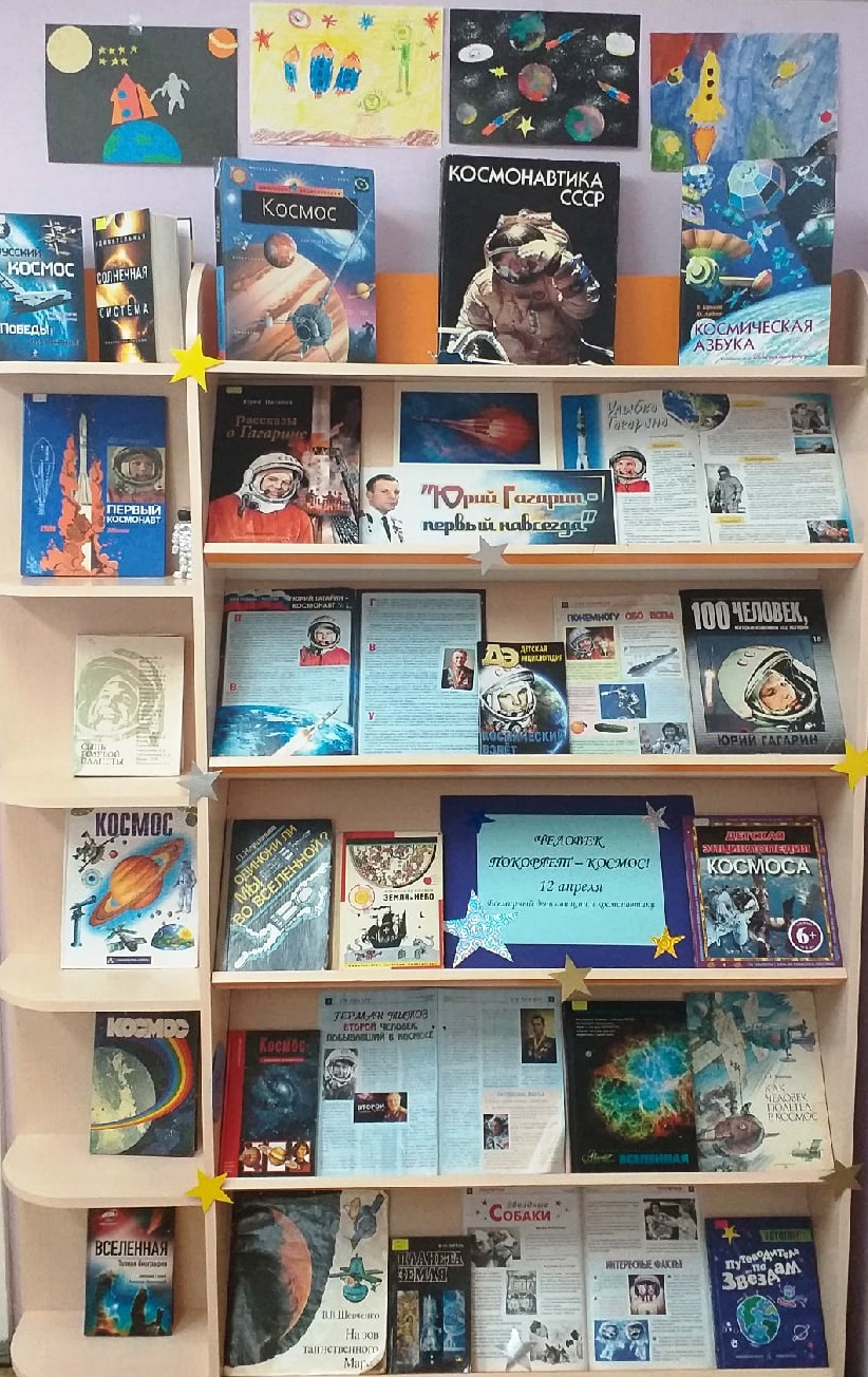 К этой дате сотрудники Исакогорской детской библиотеке № 13 в читальном зале оформили книжную выставку-портрет «Человек покоряет космос».
