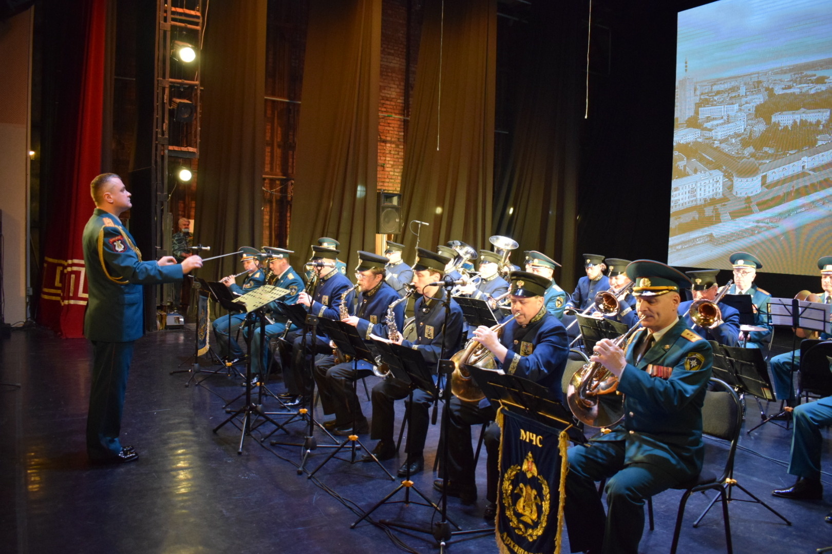 В столице Поморья концерт «Навечно с музыкой в строю» прошел на главной сцене Архангельского городского культурного центра. Для северян выступил не только сводный оркестр Главного управления МЧС России по Архангельской области и городской духовой оркестр им. Владимира Васильева, а также женский хор Архангельского музыкального колледжа, хор народной песни «Ягра» и трио труб.