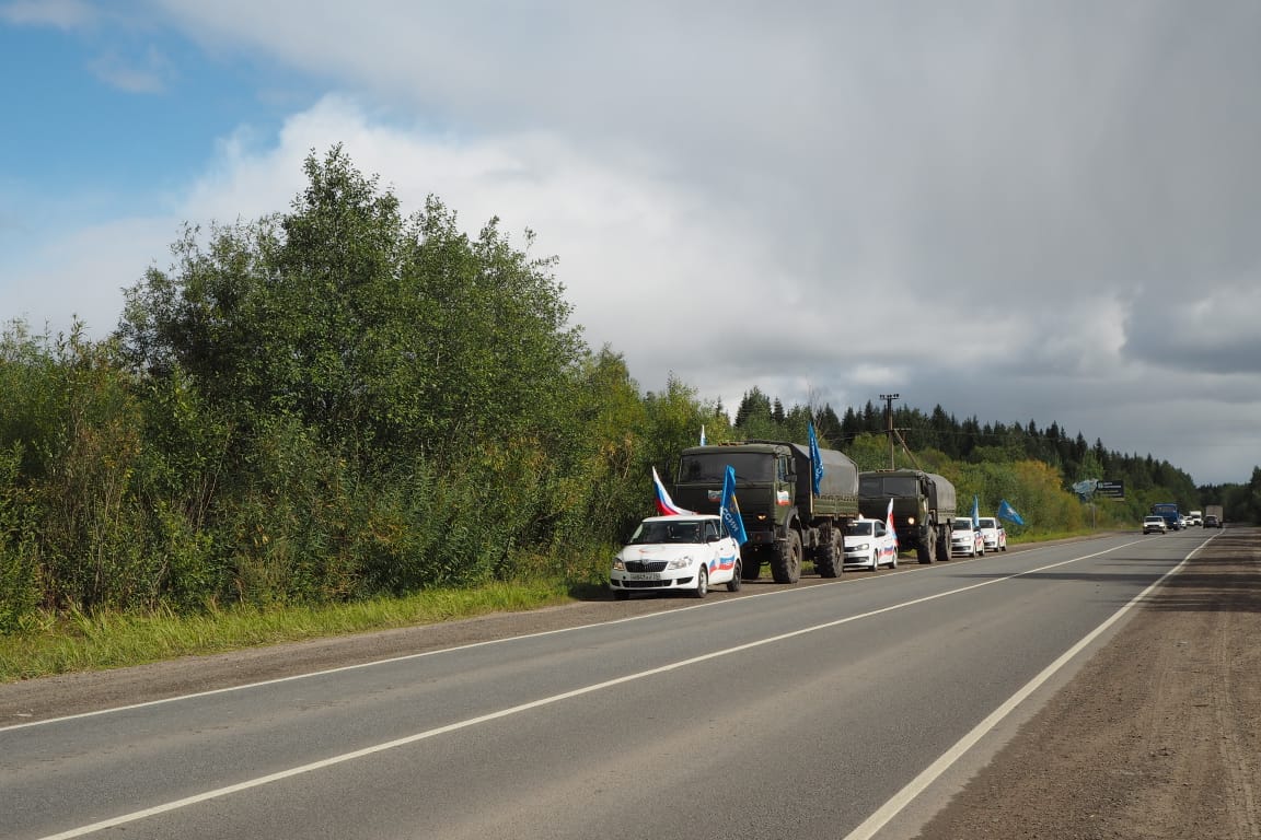 В Онеге к колонне машин присоединились представители администрации, общественники и ДОСААФ, которые сопровождали колонну в границах города.