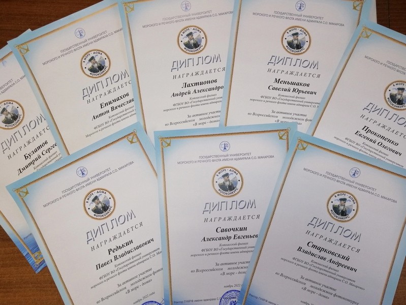 Работа курсанта Дмитрия Менькина организаторами конкурса была перенаправлена для участия во Всероссийском молодежном фотоконкурсе, проходящем в рамках Всероссийского фотоконкурса «Одна страна — одна дорога», где получила специальный диплом жюри в номинации «Моё судно».
