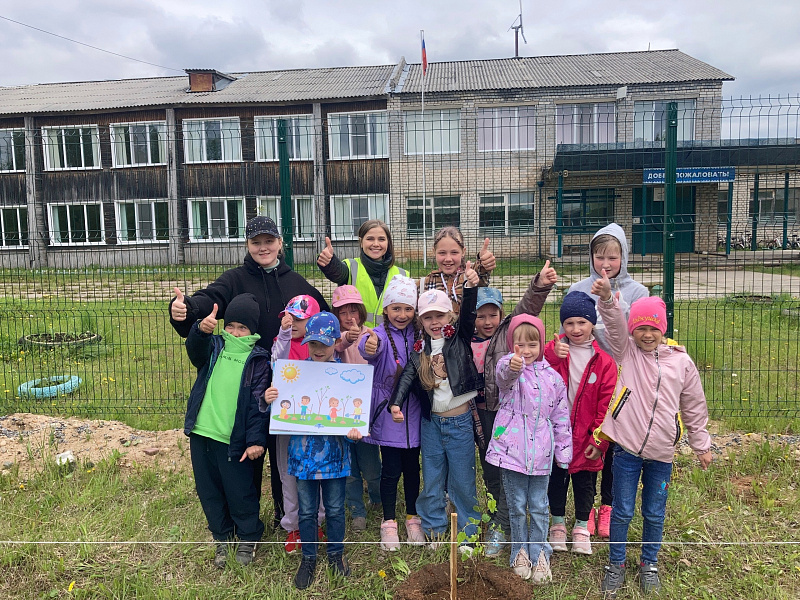 Анастасия Андреева показала ребятам, как правильно сажать деревья - липу мелколистную. Каждый ребёнок мог принять участие в посадке: одни ребята выкапывали лунки, вторые садили, третьи поливали. Летом дети будут присматривать за своими деревьями, убирать сорняки в прикорневом круге и поливать.