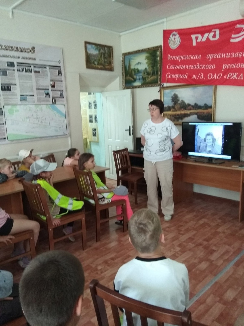 16 июня второй отряд летнего оздоровительного лагеря с дневным пребыванием в средней школе № 75 был на экскурсии в музее истории железнодорожного транспорта Сольвычегодского региона, которую им провела хранитель музея Татьяна Степановна Гущина.