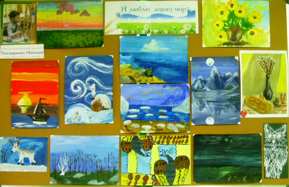 В Исакогорской детской библиотеке № 15 продолжает работу выставка рисунков «Я люблю этот мир», на которой представлены лучшие работы Дехтяренко Михаила, ученика 3 «Б» класса МБОУ СШ № 34.