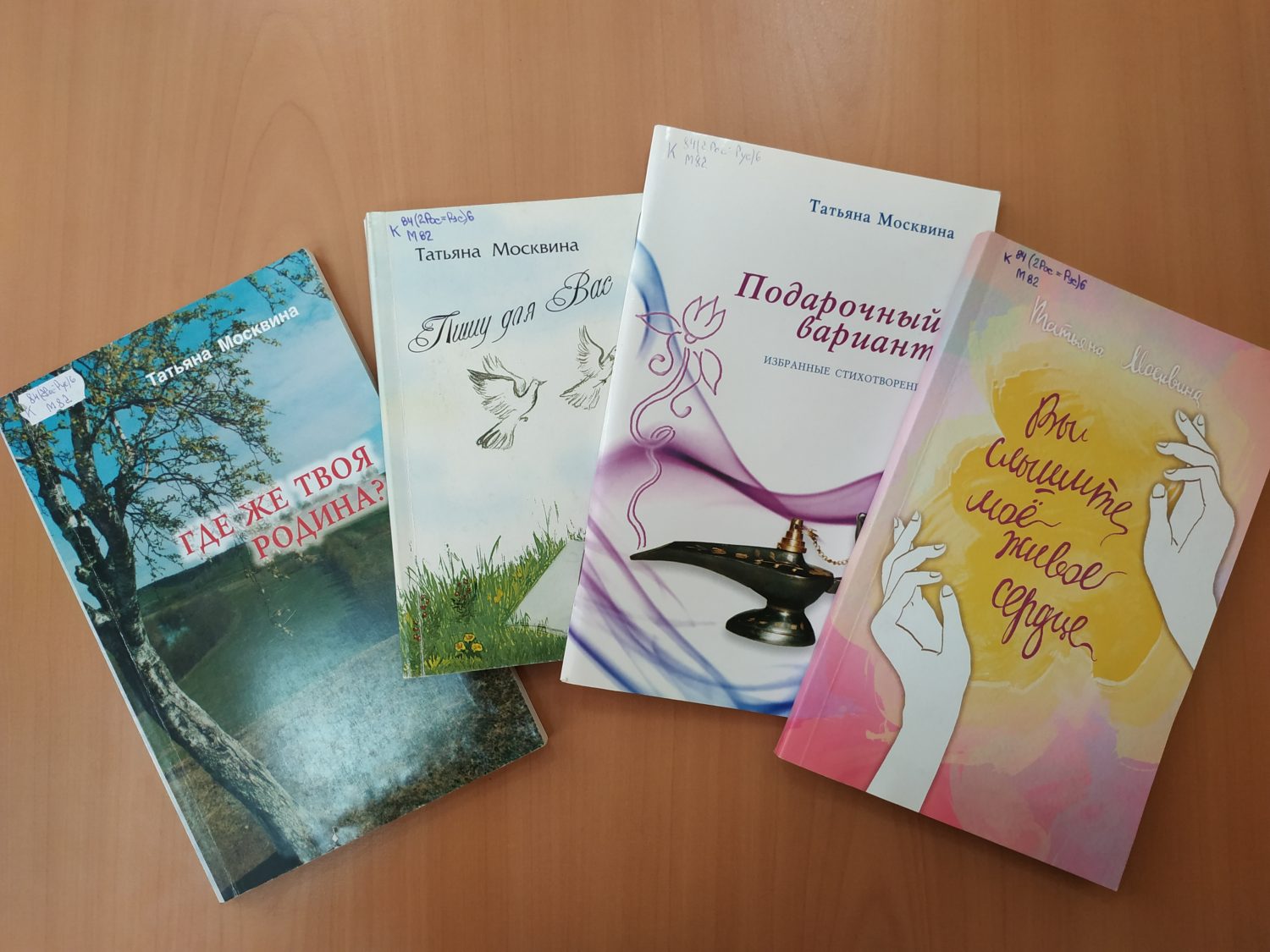 Татьяна Васильевна Москвина известна как автор сборников стихов и песен, прозаических произведений, изданных в Архангельске и Сыктывкаре. Среди них «Школьные приметы», «Незабытые слова», «Пишу для вас», «Север, ставший мне родным», «От серьезного до смешного», «Подарочный вариант», «Вы слышите мое живое сердце», «Осуждены властью безвинно», «Я представляю это так», «Не берите в голову». Книга «Где же твоя родина?» удостоена премии общественности г. Архангельска «Чаша раздумий».
