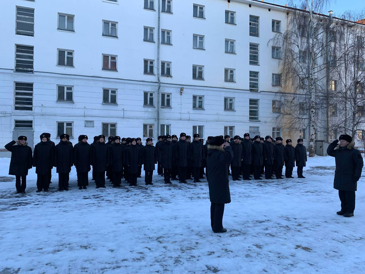 Строевой смотр личного состава 1, 2, 3 курсов Арктического морского института, посвященный Дню защитника Отечества, был проведен 16 февраля 2023 года.