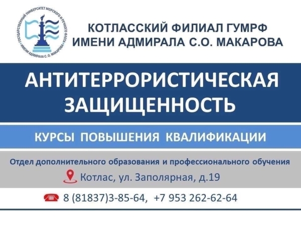 В Котласском филиале ГУМРФ имени адмирала С.О. Макарова идет набор на курсы повышения квалификации «Антитеррористическая защищенность».