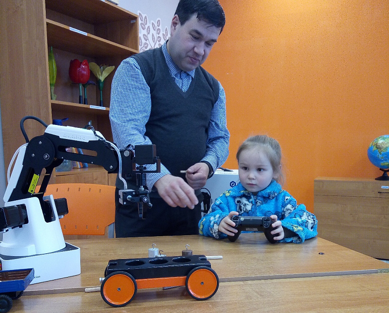 А как загорелись глаза у ребят, когда Сергей Витальевич показал настоящего робота, как им управлять, что он умеет делать! Всем, конечно, захотелось попробовать себя в роли оператора. Не все получилось с первого раза, но ребята справились и им ОЧЕНЬ понравилось!