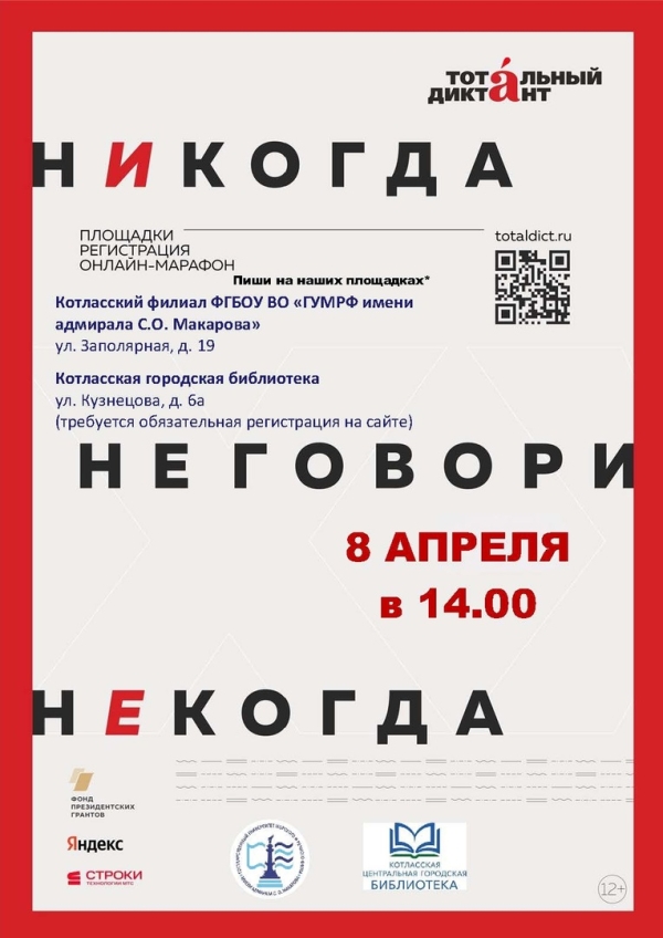 В акции примут участие сотни тысяч жителей российских городов и сел, а также русскоязычные жители зарубежных стран. В Котласе в будут открыты две площадки: