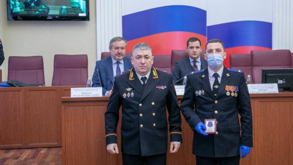 Александр Цыбульский вручил отличившимся сотрудникам заслуженные награды. Первым ее по праву получил начальник отделения уголовного розыска УМВД России по городу Архангельску старший лейтенант полиции Андрей Морозов. В конце апреля 2020 года он спас из заблокированной квартиры в горящем доме трех человек, среди которых была 80-летняя женщина, передвигающаяся на инвалидной коляске, и 12-летний подросток. Указом президента России он награжден медалью «За спасение погибавших».
