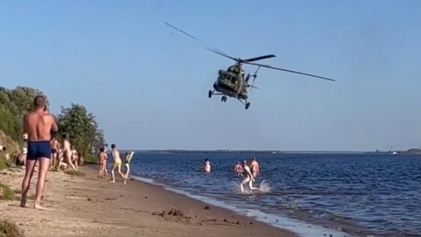 Авиашоу на пляже: вертолет пролетел над отдыхающими архангелогородцами