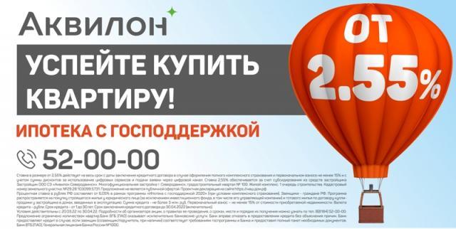 Группа Аквилон предлагает квартиры в новостройках со ставкой всего 2,55%!*