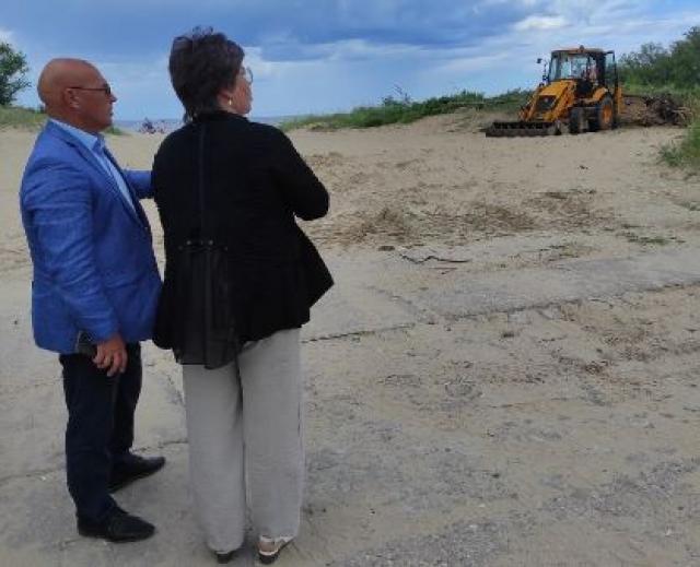 Сейчас прорабатывается вопрос об устройстве в этом месте заграждений, чтобы песок не выдувался ветром и не попадал на проезжую часть.