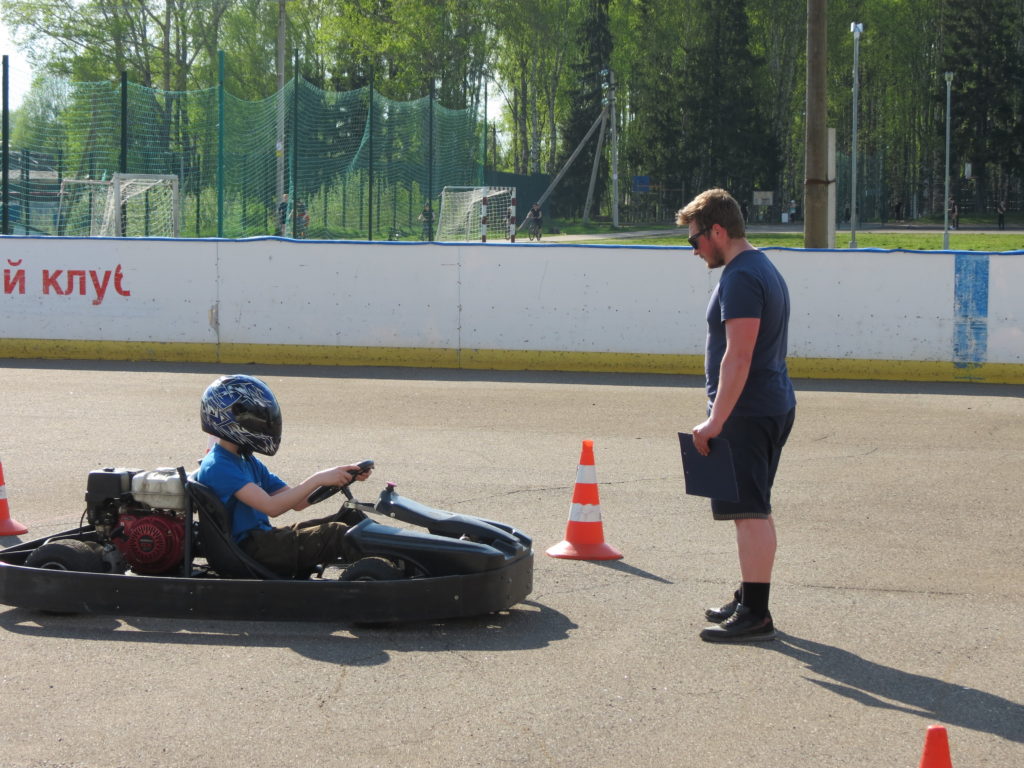 Уже в первый день, 31 мая, на корте поселка Березник было оживленно: совсем юные мальчишки и взрослые молодые люди с интересом рассматривали технику и узнавали, когда же можно уже сесть за руль. Формировались небольшие группы (по пять человек). На одну группу выделяется 1 час времени, за который с ребятами волонтеры проводили инструктаж по технике вождения и правилам прохождения маршрута. И самая долгожданная часть — заезды на картах — гоночных микролитражных автомобилях с мотоциклетными двигателями без кузова.