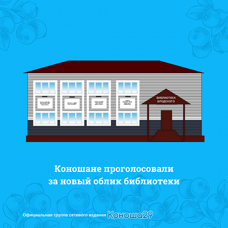 Коношская центральная районная библиотека им. Иосифа Бродского провела онлайн-голосование на своей странице ВКонтакте, в котором предлагала выбрать один из четырёх вариантов фасада.