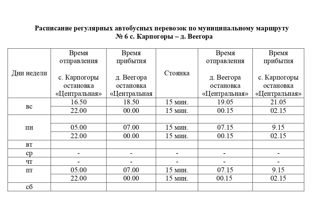 Утром 2 декабря первый рейсовый автобус отправился из Карпогор в поселок Междуреченский, в пятницу муниципальный транспорт свяжет райцентр и Верколу, а в воскресенье запускается сообщение с деревней Веегоры