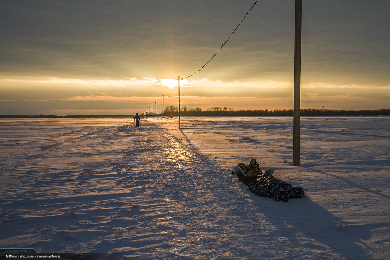 В дельте Северной Двины лед формируется неровными площадями: где-то он довольно прочен, где-то только промоины, которые обманчиво припорошил снег. Намерзающий припай отрывают от берега приливы и отливы, по рукавам Двины активно ходят суда, много битого льда. Так что лед намораживает крайне неравномерно.