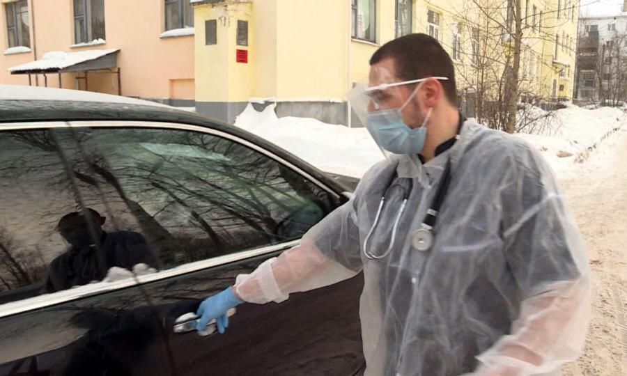 Фельдшер неотложки Левон Вернер в Первой поликлинике Северодвинска — на передовой. В день молодой человек обходит до 50 пациентов.