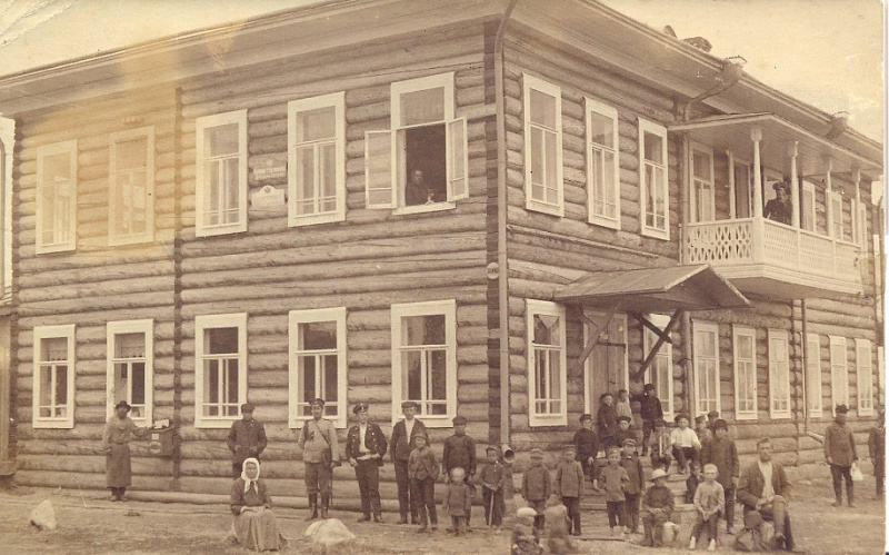 1913-1914 гг., дом А.Суханова с вывеской "Почтово-телеграфное отделение" в г. Красноборск.