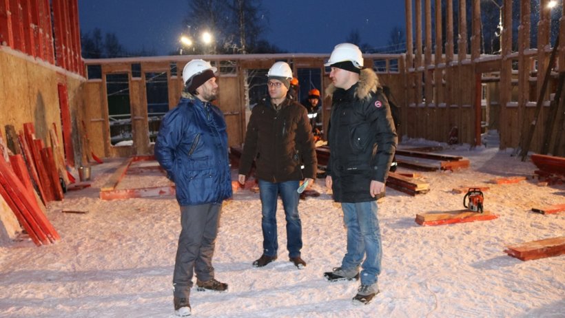 По словам главы регионального минстроя, сегодня на объекте, заказчиком которого выступает администрация муниципалитета, каркас здания в деревянном исполнении монтируют 12 специалистов.