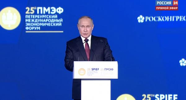 Об этом сегодня заявил президент России Владимир Путин на пленарном заседании XXV Петербургского международного экономического форума (ПМЭФ).