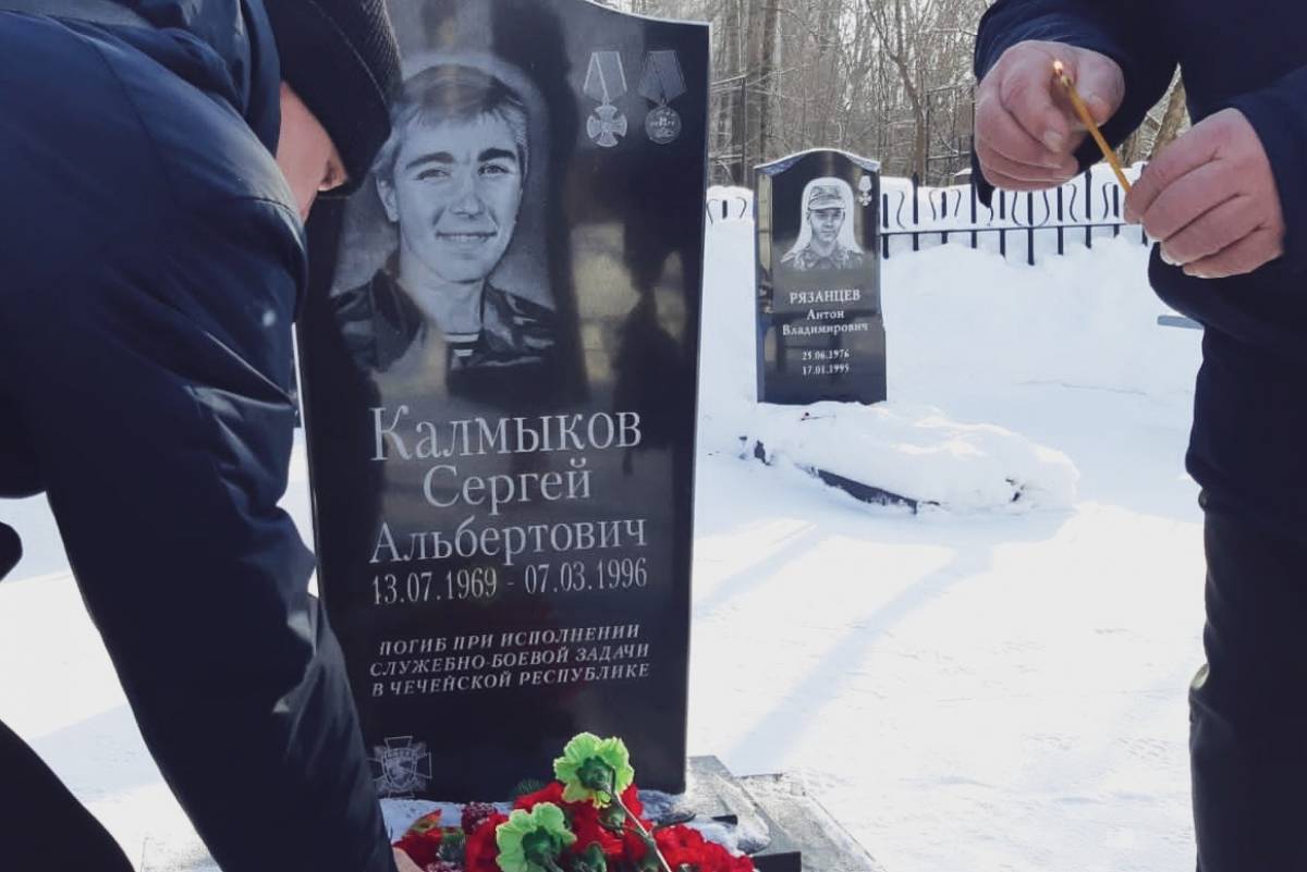 В 1996 году в Чеченской республике, при выполнении боевой задачи, трагически погиб боец отряда мобильного особого назначения сержант милиции Сергей Калмыков.