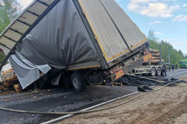 Накануне около 19.00 на 154 километре автодороги «Долматово-Няндома-Каргополь-Пудож» водитель 1968 года рождения, управляя автомобилем «МАЗ» с прицепом, двигаясь по направлению в город Няндома, выехал на полосу встречного движения и допустил столкновение со встречным большегрузом «SCANIA» с прицепом.