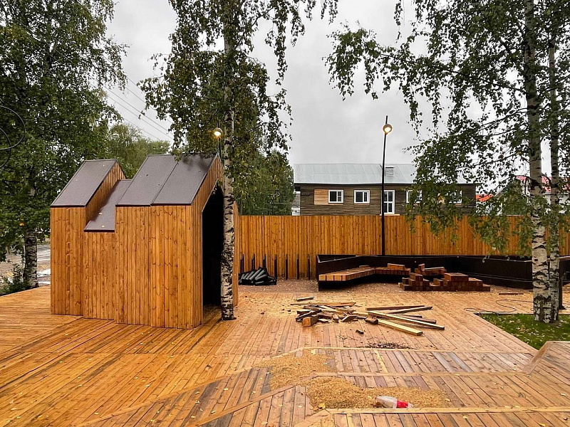 Благоустройство территории у Карпогорской библиотеки имени Фёдора Абрамова всё ближе к финалу