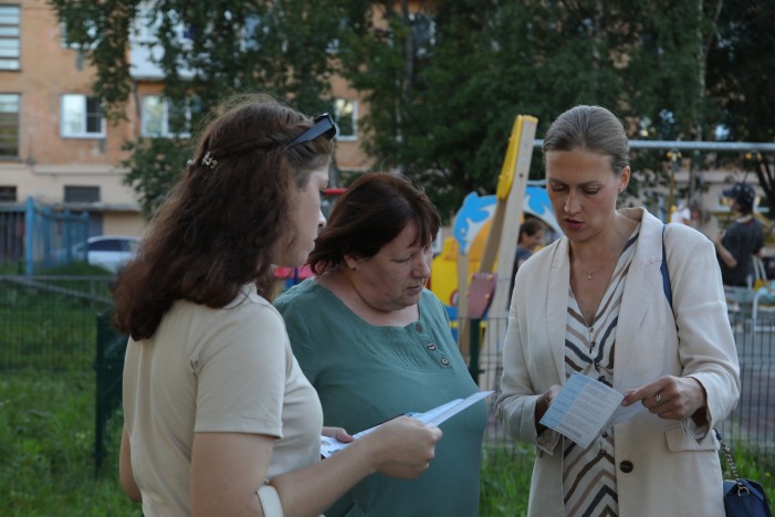 Волонтёры проекта и жители собрались на территории дома № 9 на улице Гагарина. К ним присоединились депутат городского Совета Светлана Никитина, являющаяся одним из координаторов проекта.