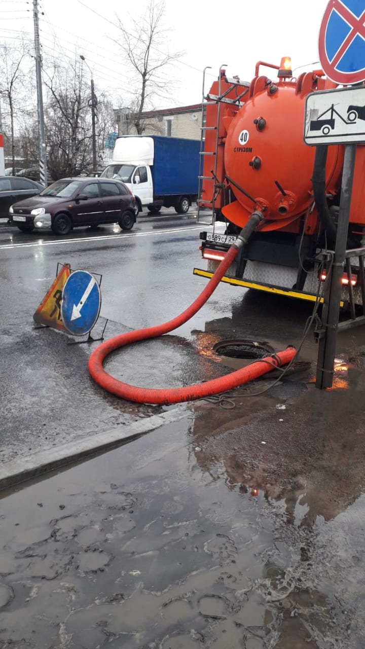 На улицах Архангельска устраняют подтопления в связи с погодными условиями