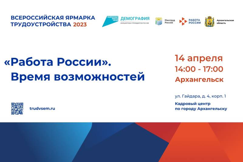 14 апреля в здании кадрового центра Архангельска по адресу ул. Гайдара, д. 4, корпус 1 пройдёт Городская ярмарка вакансий от администрации Архангельска и областного центра занятости населения в рамках всероссийской ярмарки вакансий.