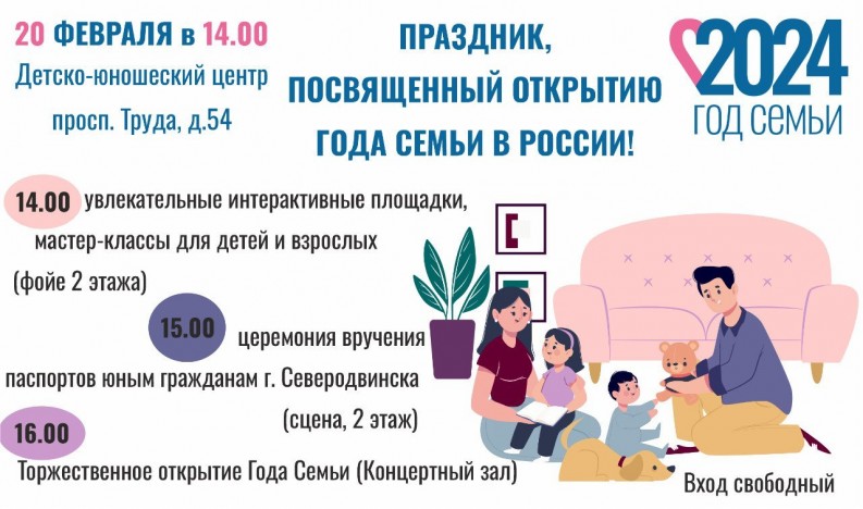 20 февраля в Детско-юношеском центре (проспект Труда, 54), начиная с 14:00, развернутся интерактивные площадки, будут организованы мастер-классы и состоятся торжественные мероприятия, посвящённые объявленному Президентом России Году семьи.