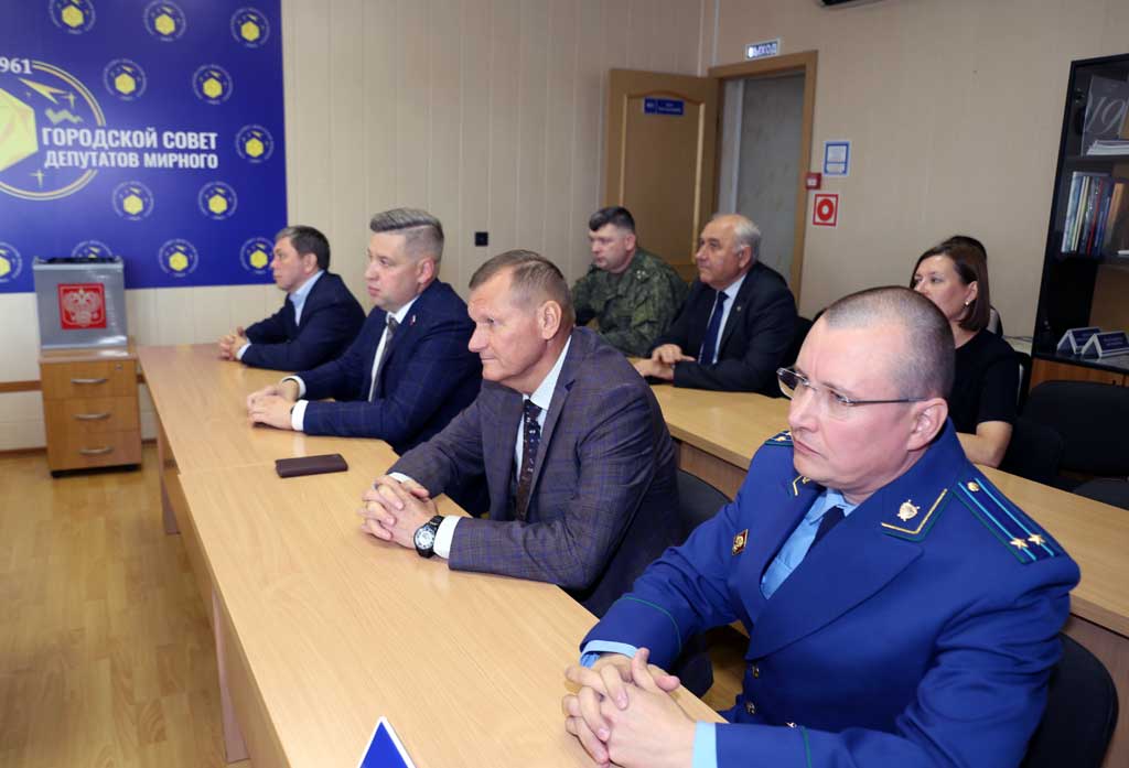 Перед началом заседания слово было предоставлено председателю Мирнинской городской территориальной избирательной комиссии Игорю Бирюкову. Он огласил постановление комиссии от 15 сентября 2024 г. № 115/275-5, согласно которому Радионов Петр Дмитриевич и Сгибнев Евгений Валерьевич зарегистрированы депутатами городского Совета депутатов Мирного седьмого созыва по трехмандатному избирательному округу № 7, и вручил им соответствующие удостоверения. Напомним: по итогам дополнительных выборов в горсовет, проходивших 6-8 сентября, Петр Радионов и Евгений Сгибнев набрали наибольшее количество голосов.