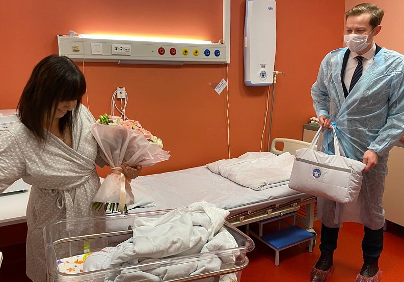 Перед выпиской мамы и дочки они заехали навестить их и вручить от имени губернатора Александра Цыбульского подарки для новорожденной. Все, что нужно на первое время, – в наборе новорожденному, который в Поморье получает каждая семья, где на свет появился малыш. Кроме того, среди подарков – принадлежности, которые в семье еще не успели купить: стульчик для кормления и коляска. И, конечно, букет цветов для мамы маленькой северянки.