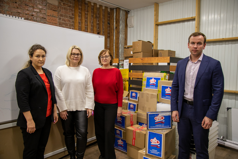 Сегодня сотрудники Отделения ПФР по Архангельской области и НАО передали партию гуманитарной помощи в Губернаторский центр «Вместе мы сильнее» для детей из Мариуполя.