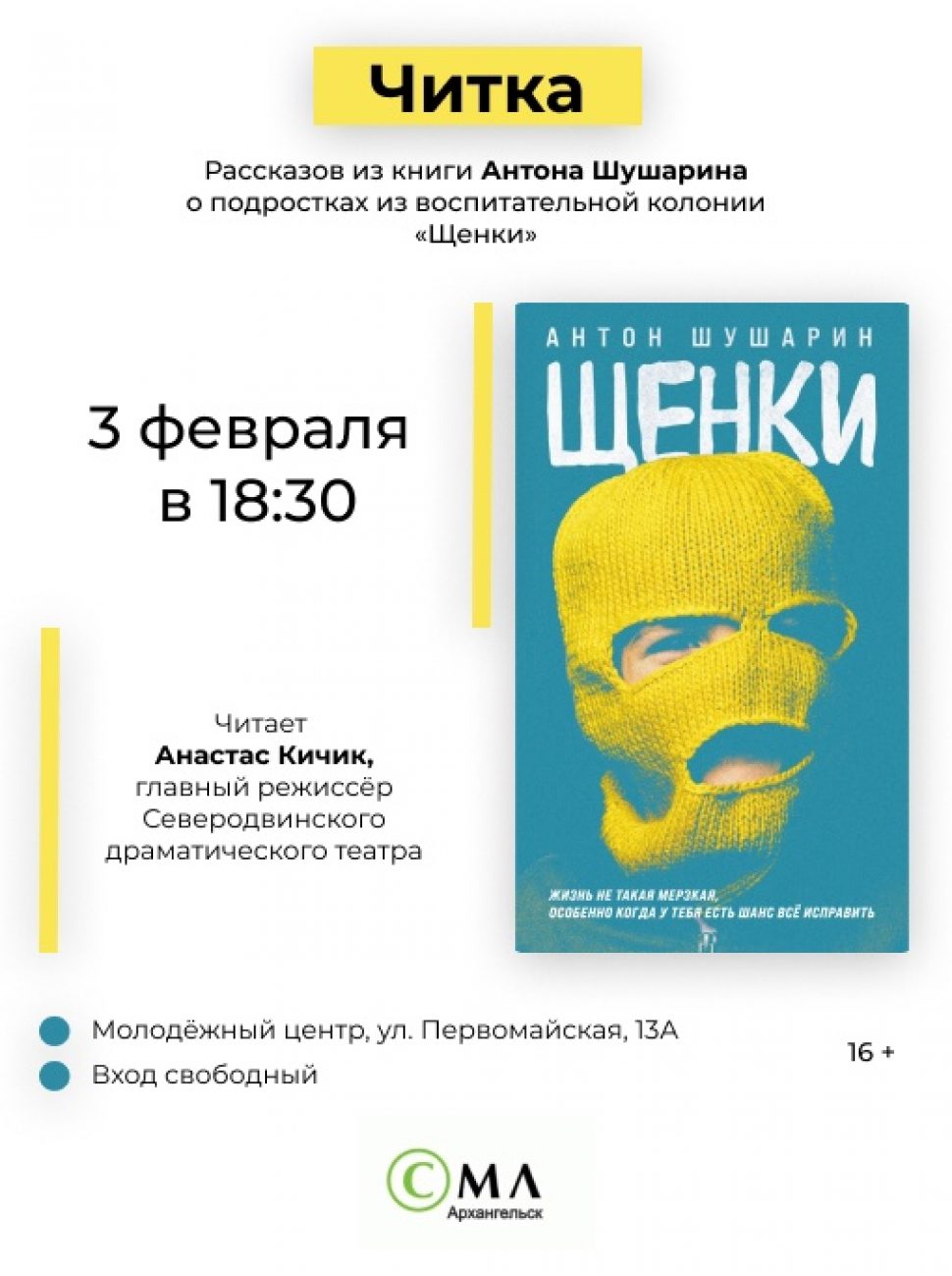 После читки состоится обсуждение с участием автора. Мероприятие организует Архангельский Совет молодых литераторов Союза писателей России.
