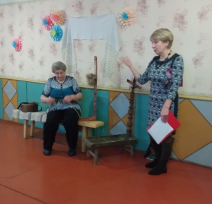 Зимой, даже в лютые морозы, народ не унывал. Девушки на вечерние посиделки — вечёрки собирались. Рассаживались по лавкам и с песнями начинали прясть. А как это происходило, сотрудники музея показали с помощью экспонатов. Горит лучина, вставленная в светец. На лавке, покрытой домоткаными дорожками, сидит женщина. Рядом — прялка с куделей, по другую сторону — решето с веретёнцами. Зоя Анатольевна Чупрова показала, как происходил процесс прядения.