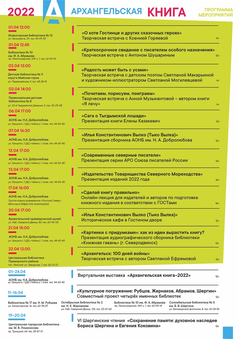 С 1 по 23 апреля будет организована работа виртуальной книжной выставки «Архангельская книга – 2022»: читатели отдела библиотечного обслуживания смогут познакомиться с лучшими изданиями Архангельской области, ставшими участниками конкурса для издателей и полиграфистов «Книга года – 2022».
