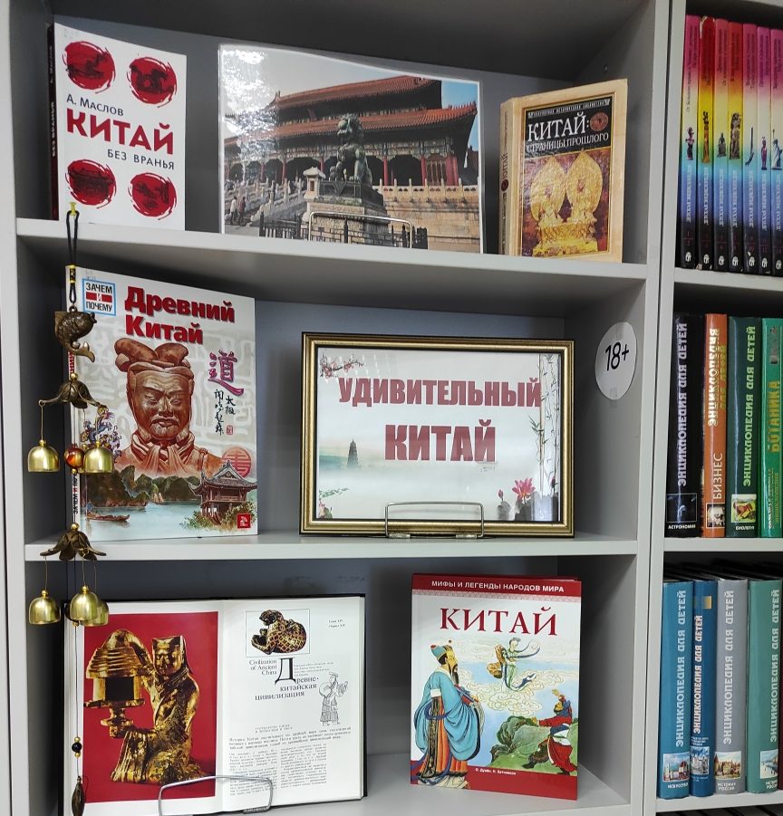 На выставке представлена книга «Китай, Страницы прошлого». В. Сидихменова рассказывает об обычаях, нравах, семейном укладе, поверьях и обрядах китайцев — народа, создавшего одну из самых интересных и во многом загадочных цивилизаций Востока.