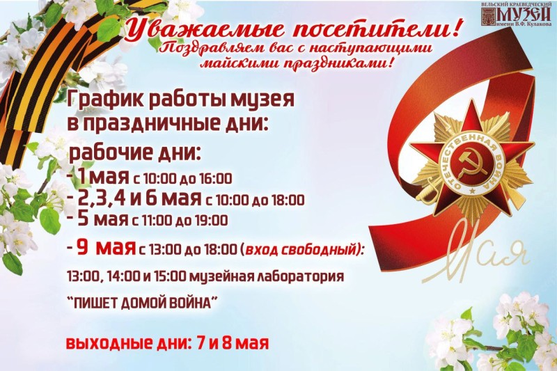 ВЕЛЬСКИЙ МУЗЕЙ ПРИГЛАШАЕТ НА МАЙСКИЕ ПРАЗДНИКИ!