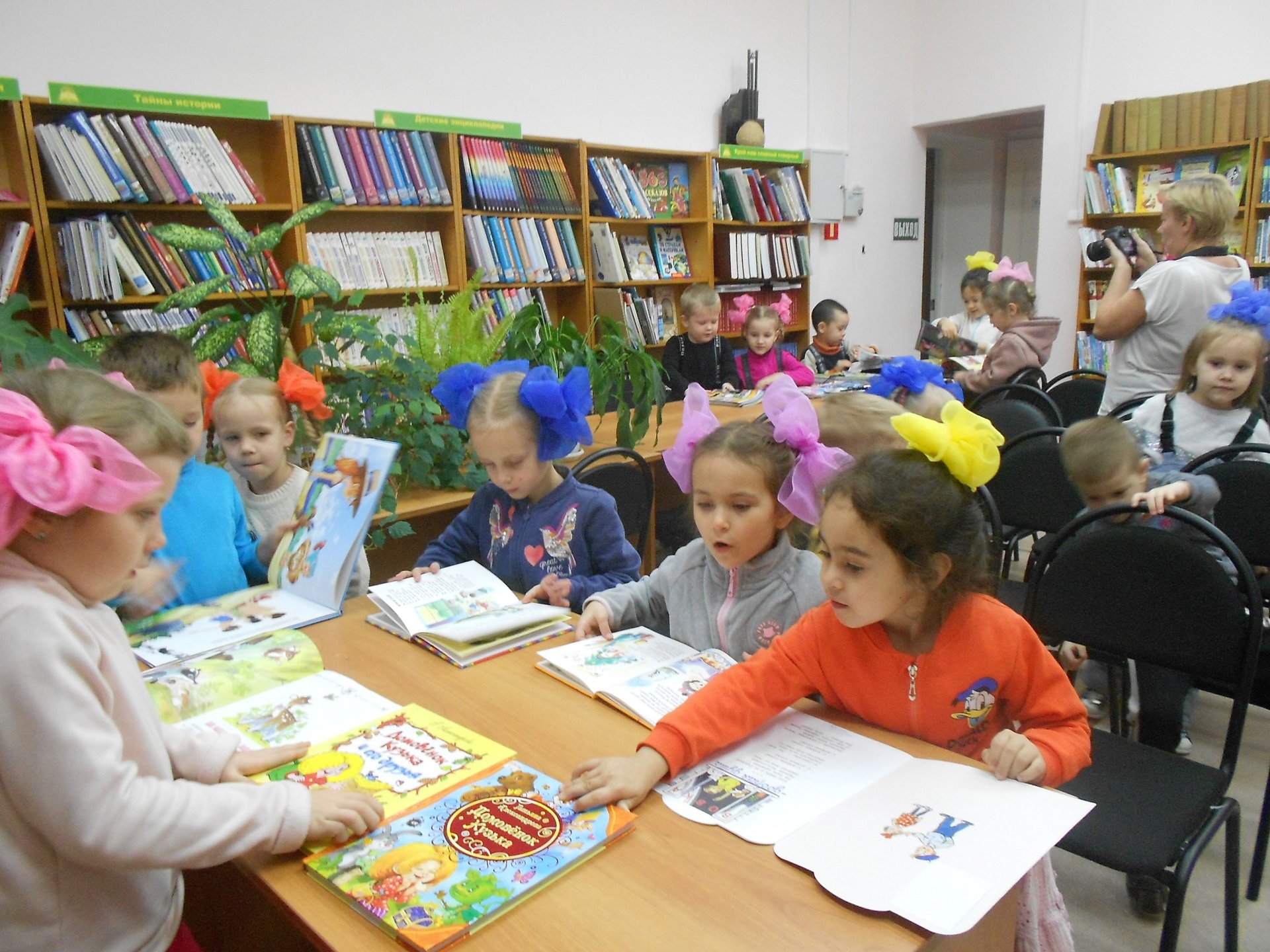 На экскурсии по библиотеке дети много узнали о «книжном доме», о том, что здесь книги интересные стоят рядами тесными. На длинных полках вдоль стены вместились сказки старины.
