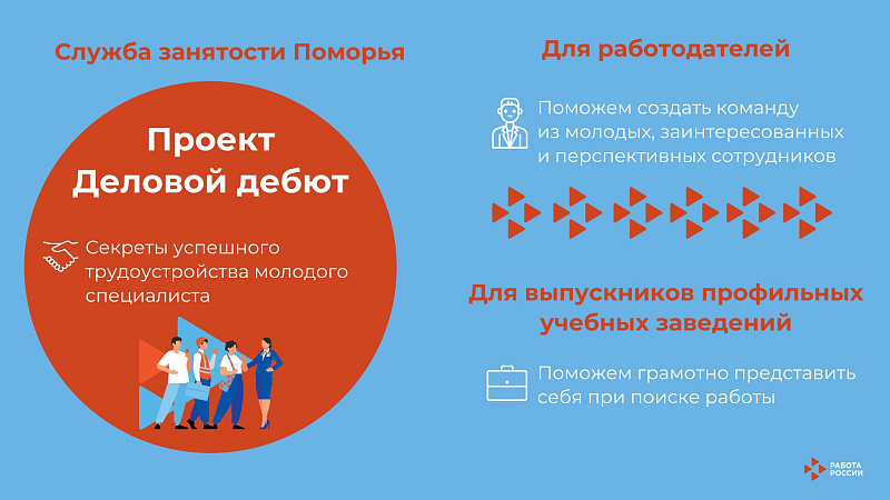 Служба занятости Архангельской области на площадках трех отделений – в Архангельске, Северодвинске и Устьянском округе – запускает новый проект «Деловой дебют».