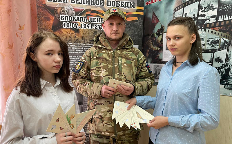 Она направлена, прежде всего, на гражданско-патриотическое воспитание детей, сохранение исторической памяти о Великой Отечественной войне. Традиционные духовно-нравственные ценности вечно останутся таковыми. Преемственность поколений, патриотизм, служение Отечеству и ответственность за его судьбу актуальны и в наше время.В рамках акции «Пишу тебе, солдат!» ребята писали письма участникам специальной военной операции. Они поздравляли бойцов с праздником Великой Победы, желали им здоровья и скорейшего возвращения. Письма были написаны с любовью, трепетом и огромным искренним желанием поддержать наших солдат. Их планировали передать в Шенкурский центр поддержки «Вместе». Но… Ребятам посчастливилось отдать свои письма лично в руки участнику СВО.