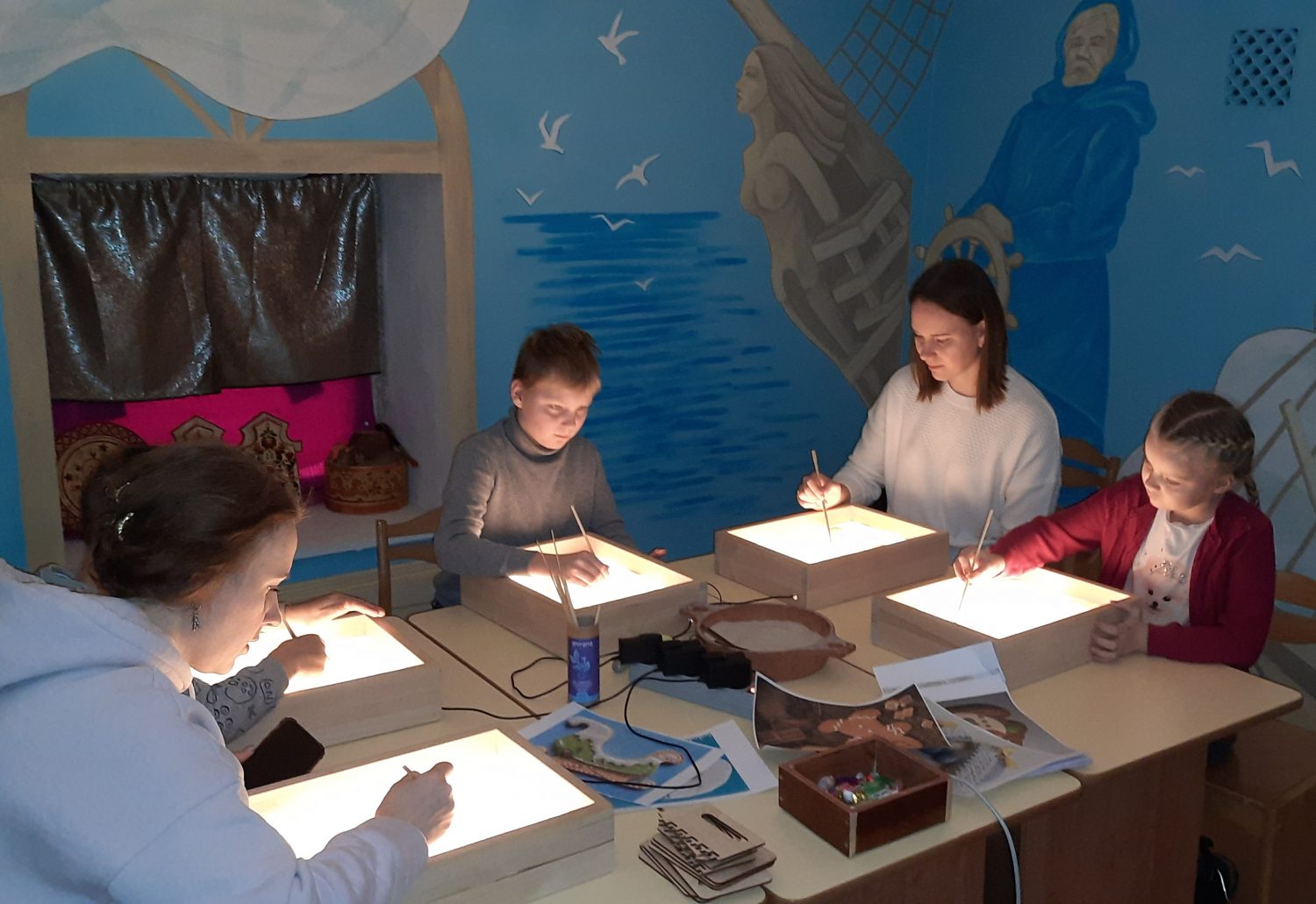 Под таким названием в Соломбальской библиотеке № 5 им. Б. В. Шергина в дни новогодних каникул для ребят различных возрастов состоялись мастер-классы по песочной анимации.