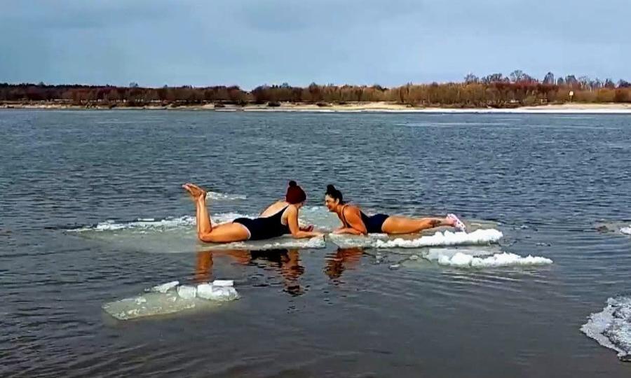 Окунуться в ледяную воду, а потом ещё и полежать на льдине — так Коряжемский клуб моржей бросает вызов холоду.