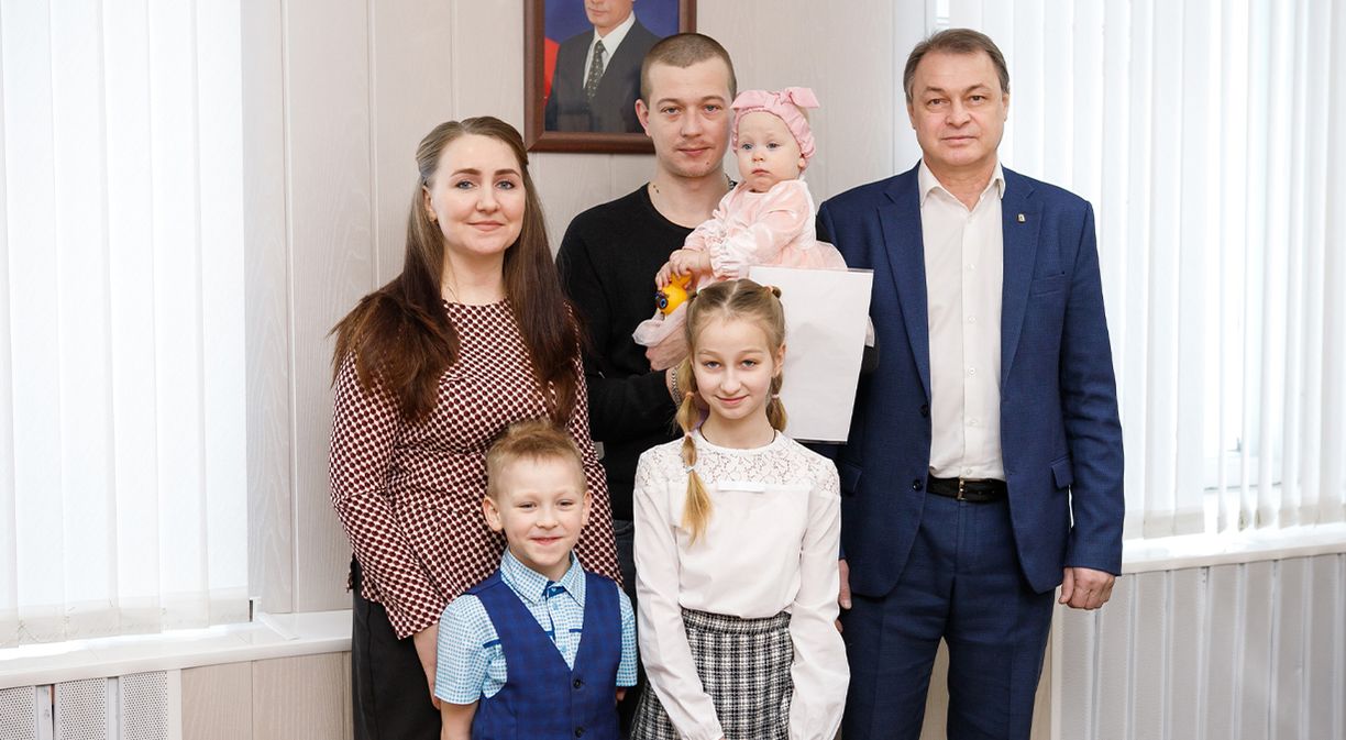 За получением свидетельства на право получения социальной выплаты семья пришла в полном составе: за руку с мамой – десятилетняя Алиса и пятилетний Руслан, на руках папы – Маргарита, которой 1 февраля исполнился один годик.