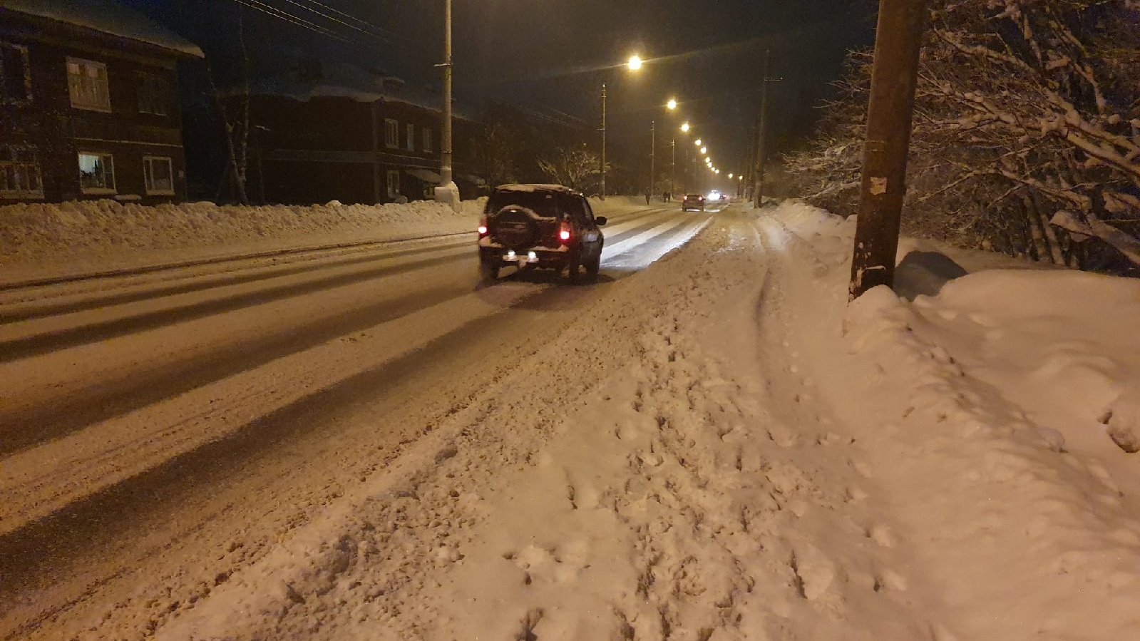 Однако первая же зима показала, что власти с этим не справляются. Зачастую тротуары вдоль улицы Победы были занесены снегом, и жителям приходилось либо протаптывать тропинки, либо идти прямо по проезжей части.