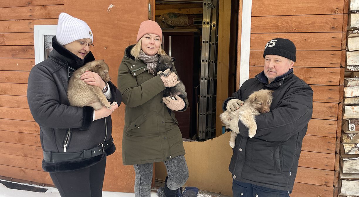 О потомстве щенков быстро узнали коряжемские зоозащитники и сразу поспешили на помощь. Всех восьмерых пришлось сначала отлавливать, а потом искать им теплый приют. Снова помог Александр Елагин. В качестве временного убежища предоставил свой деревянный сарай и большую картонную коробку с теплым одеялом. Питаются щенки горячей едой как положено – пять раз в сутки. Пищу готовят и ежедневно привозят зоозащитники.
